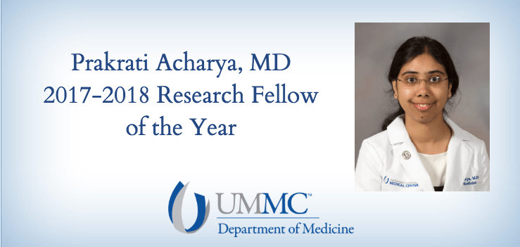 Congratulations to Prakrati Acharya, MD for being selected as the 2017-2018 Research Fellow of the Year