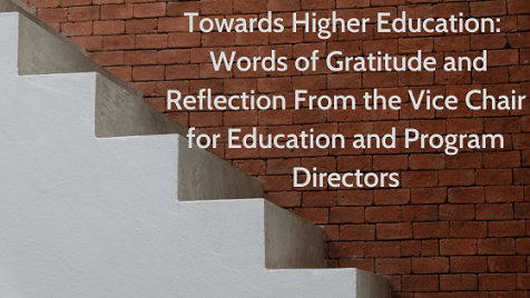 When our education programs thrive, so do our faculty and patients. Neither sustained success nor growth can happen in a vacuum. We thank everyone in the Department for their ongoing commitment to excellence in patient care and Medical Education. We look forward to serving the department in the coming year and certainly welcome and encourage all of you to continue and grow your own participation in these important programs. We look forward to sustaining this level of excellence and introducing new and important initiatives at all levels of education.