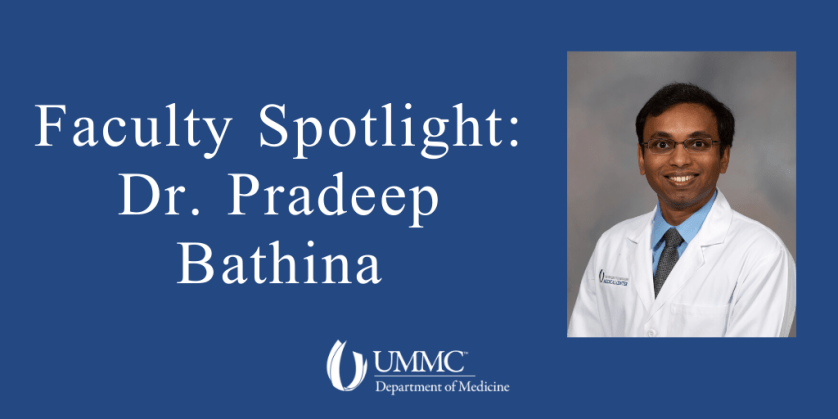 Dr. Pradeep Bathina is a faculty member in the Hospital Medicine division and is currently serving on the front lines caring for COVID patients. Here, Dr. Bathina shares about his background, his love of UMMC, and a very memorable hobby.