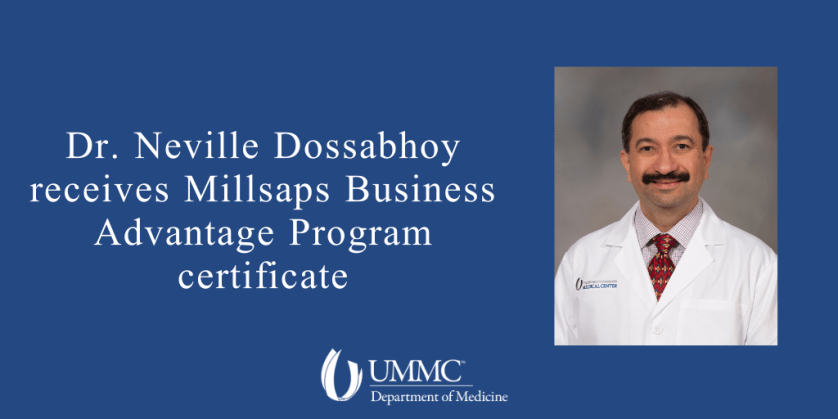 Dr. Neville R. Dossabhoy, Professor of Medicine, and the Nephrology Division Clinical Director and Fellowship Program Director, graduated from the Millsaps Business Advantage Program this month.