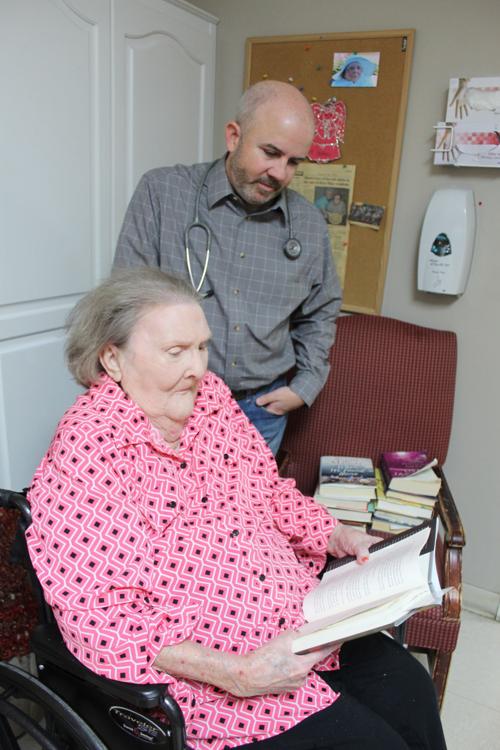 “This is a photo of me with one of my nursing home patients. It appeared in our local paper. She was an avid reader and always had stacks of books in her room. When I told her I had begun writing a novel of my own, she asked me every visit for four years when it would be ready. I presented her a copy here. She told me later, “To be truthful, I didn’t expect much, but it was very very good!” We had a good laugh about her candor.” – Dr. Dwight McComb