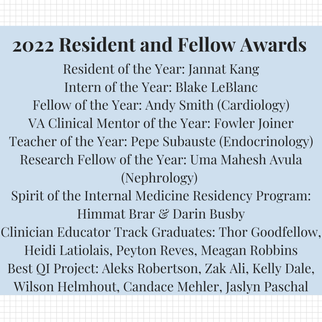 Congratulations to all the residents, fellows, and faculty who received awards this year and best of luck to all graduating and moving on either in their training or into practice!
