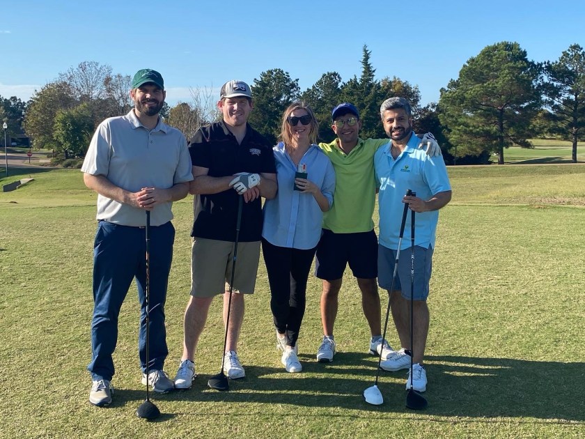 The annual Griffith-Pinkston Memorial Golf Tournament, honoring two of our late outstanding pulmonologists, James Griffith (“Grif”) and William “Chappie” Pinkston, took place on Friday, November 11th at Lake Caroline Golf Course and it was a beautiful day. Residents, fellows, faculty, sponsors, and alumni totaling 125+ participated, giving us the highest attendance to date! The money raised through the event supports our Trainee Scholarship Fund, which provides the sole means for our residents and fellows to gain the essential experience of traveling to present their scholarship. This fund has now sent more than 200 of our department’s trainees to regional, national, and international meetings to represent our department and lay the foundation for their careers. Thank you to all of those who donated and participated, and we hope that many more will consider doing the same when we hold the Griffith/Pinkston Memorial Golf Tournament on Friday, November 10, 2023.