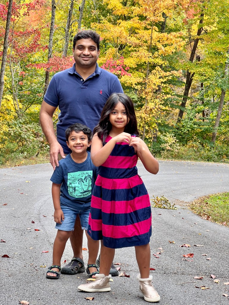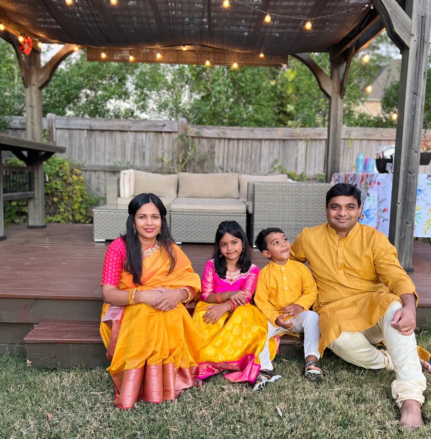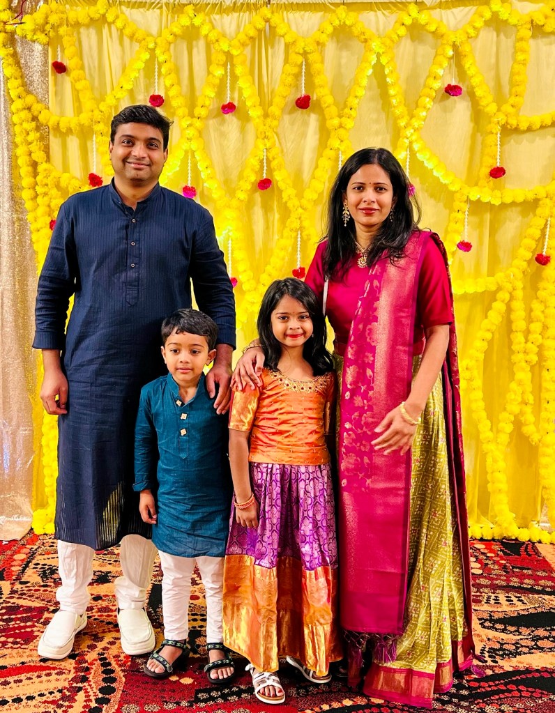 Family photos: my husband Pradeep Vaitla, my daughter Tisya, my son Nivish, and me