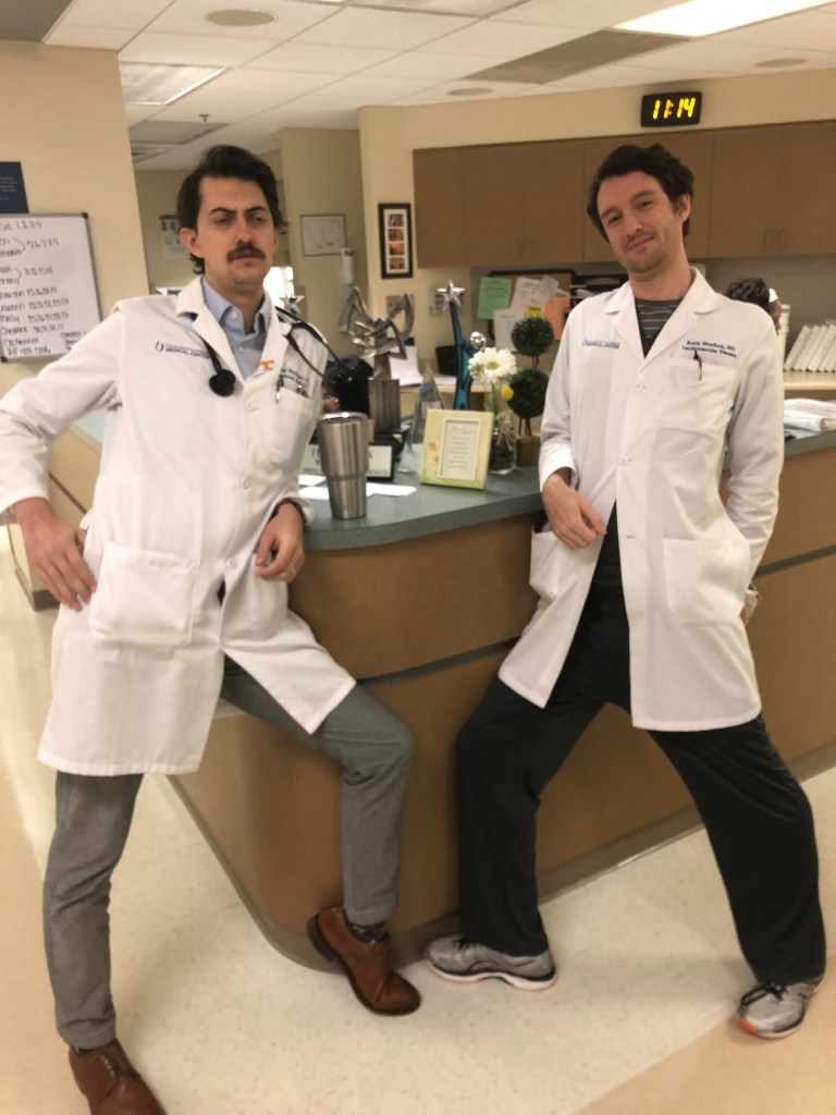 I couldn’t possibly go into all the great memories I have from my 4 years in Jackson. I’ll of course never forget breaking my right hand during intern year after Yang Guo threw a rocket to me on the basketball court. I shouldn’t have even been there. I suck at basketball. Of course, the next day was call. After everyone realized I couldn’t actually move my hand, I was snuck into the ER for an X-ray which showed the break. My finger was reset and I was placed in a ulnar cast for the next several weeks. This required me to learn to type with two fingers (because dictation can’t recognize my accent), but it also got me out of having to wear a white coat on rounds for Dr. Thigpen because it wouldn’t fit over my cast (which may or may not have been 1000% truthful…). The real down side was the Crawfish Boil (another killer memory in and of itself) was during the Time Of The Cast, but don’t fear, I wrapped that sucker in paper towels and became quite effective at breaking into crawfish with a left hand and two right fingers. The smell when the cast was removed was as you might imagine. Of course, there are a ton more memories including BeerWiths, golf tournaments, call nights and ICU days and nights. The end of residency was marked by the start of COVID and my entire chief year was consumed by it more or less. While difficult to say the least, I still think back fondly on how our residency and the medicine department as a whole came together despite the lack of resources and manpower provided to us during that time. I certainly learned a lot about being a better doctor but also about leadership from the examples set above me. I also will formally state here that I do in fact regret the man bun I was forced to give myself due to my assignment to the COVID ICU and lack of open barbershops.