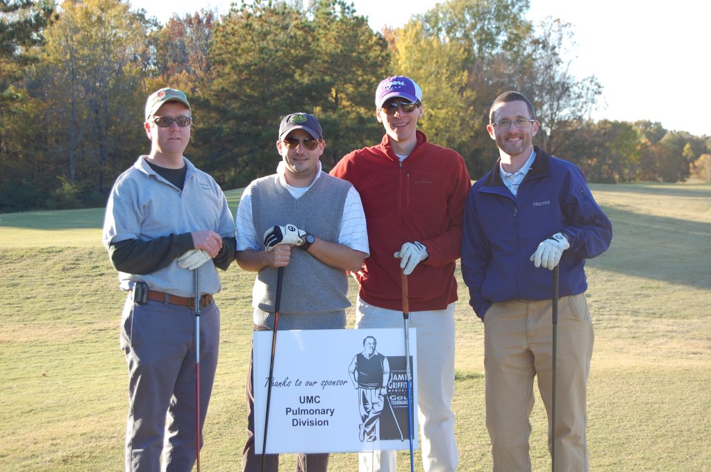 The department’s annual golf tournament began in the early 1990s, but it became the Department of Medicine Griffith Memorial Golf Tournament in 2001, two years after our state lost a true leader in pulmonary medicine education, Dr. James Griffith, a superb physician, beloved teacher, and trusted friend. In early 2011, the Pulmonary Division, as well as the Department of Medicine and the Jackson VA, lost another outstanding physician, mentor, and person—Dr. William “Chappie” Pinkston. That same year, the annual golf tournament was renamed to honor both of these influential men.