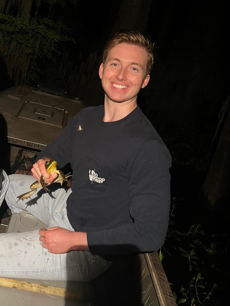 I could also speak of my adventures in nearby bayous and swamps. I have become known on our campus as the โfrog-grabbing guyโ based on a picture from Caddo Lake I used on the first day of UMMC orientation. I could talk about the color reflections of swamp eyes in the dark (white/light blue for frogs, red for alligators), how to approach a frog, and the proper hand grip to prevent frogs from causing chaos on the boat. Although I am no Steve Irwin, I would be pleased to bring some residents with me for an experience of a lifetime.