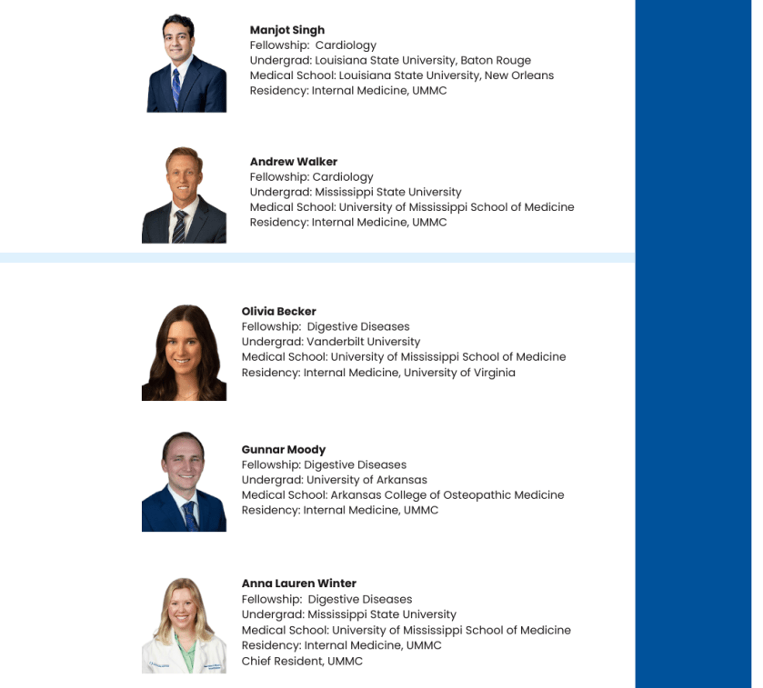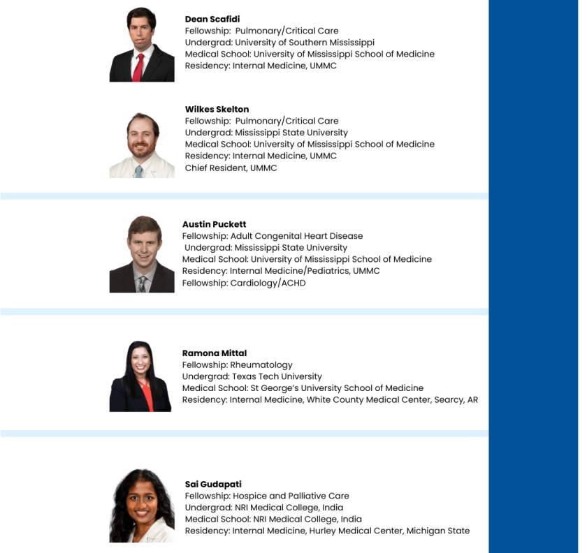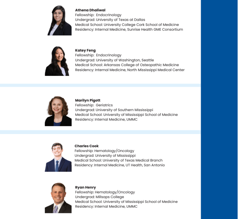 This year, the Department celebrated an overall outstanding fellowship match. Fourteen of our residents matched into UMMC fellowships and six of our residents matched elsewhere for fellowship. We are very proud of both the internal and external matches seen this year, which are a reflection of our excellent residents and the faculty that have mentored them along the way. Below is a listing of next year’s Department of Medicine Fellows and our external match list. Congratulations to all!!