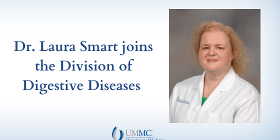 Welcome Dr. Laura Smart to UMMC! Hometown: Hardinsburg, KY Internal Medicine Residency: The Ohio State University Gastroenterology Fellowship: University of Louisville Transplant Hepatology Fellowship: The Ohio State University