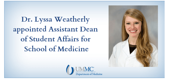 Dr. Lyssa Weatherly has been appointed as Assistant Dean for Student Affairs for the School of Medicine. Dr. Weatherly is a Mississippi native and a graduate