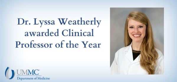 Dr. Lyssa Weatherly, Assistant Professor in the Division of Geriatrics, was awarded the School of Medicine’s “Clinical Professor of the Year,” which was voted on