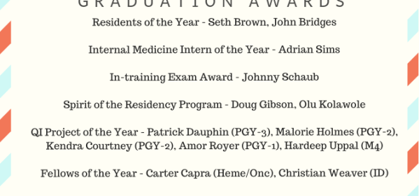 Congratulations to all the residents and fellows who received awards at their respective graduations! Best of luck to all graduating and moving on either in
