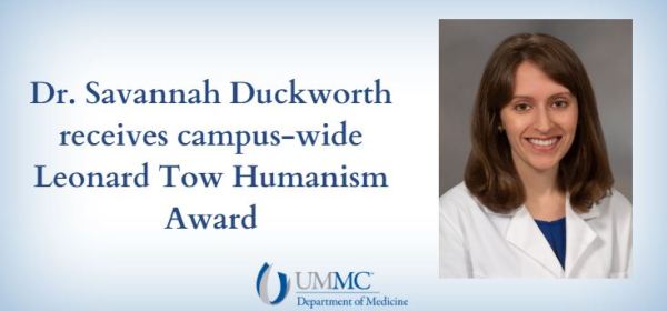 Dr. Savannah Duckworth, Assistant Professor in the Division of General Internal Medicine and Hypertension, was voted as the faculty recipient of the Leonard Tow award