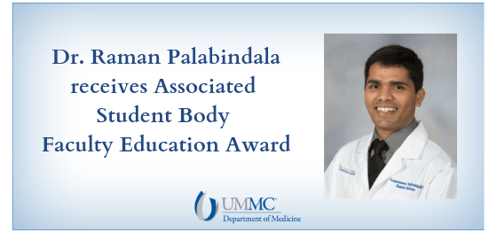 Dr. Raman Palabindala was awarded the Faculty Education Award by the Associated Student Body. This award recognizes those UMMC faculty members who demonstrate a talent