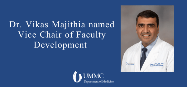 Vikas Majithia, MD, MPH, Professor of Medicine and Division Director of Rheumatology, will be leaving UMMC next month. We appreciate his 20 years of service to UMMC. In light of his leaving, the following appointments have been made in the Department: