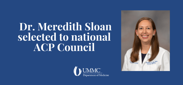 Dr. Meredith Sloan, PGY-4 in Pulmonary and Critical Care, has been selected to the ACP Council for Resident and Fellow Members. Seven trainees were chosen nationally to serve on the council for a 2-year term beginning in April 2022.